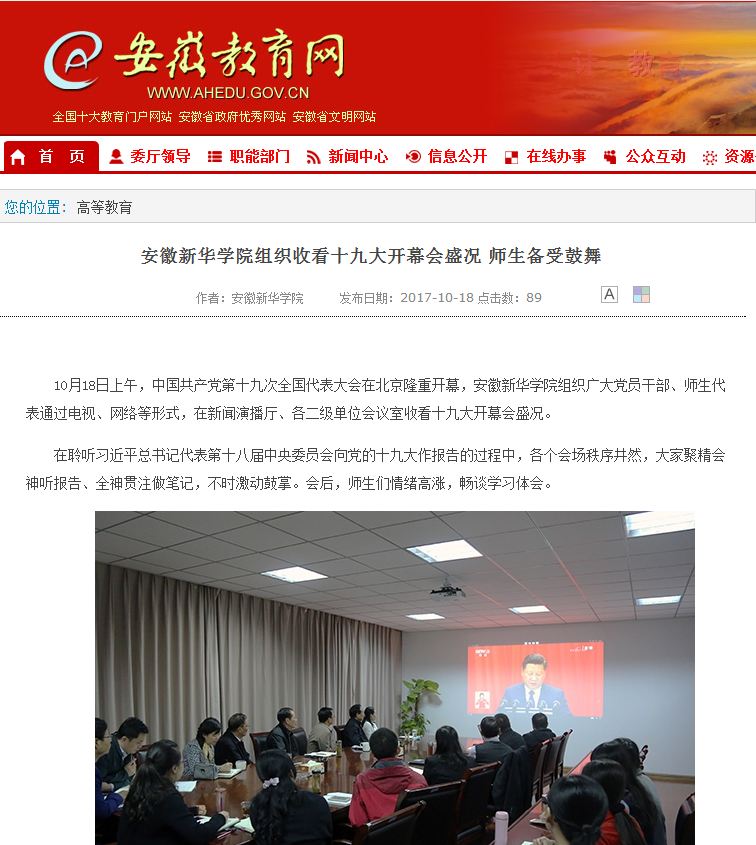 安徽教育网:yl7703永利官网组织收看十九大开幕会盛况 师生备受鼓舞