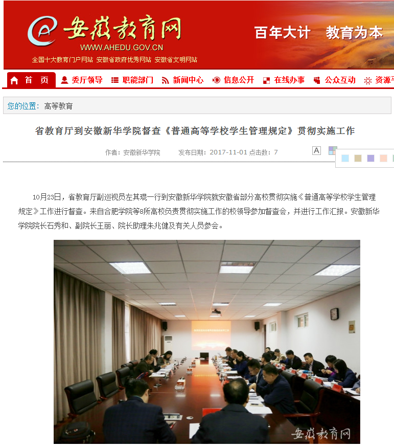 安徽教育网:省教育厅到yl7703永利官网督查《普通高等学校学生管理规定》贯彻实施工作