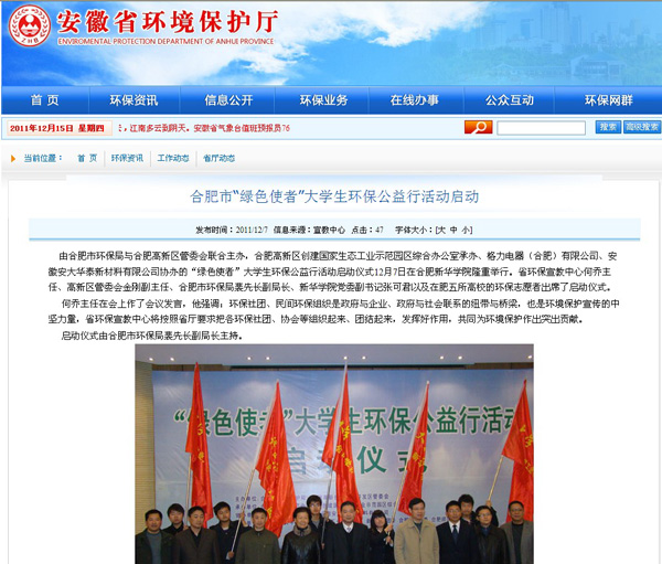 安徽省环保厅网站报道合肥市大学生环保公益行在永利官网启动